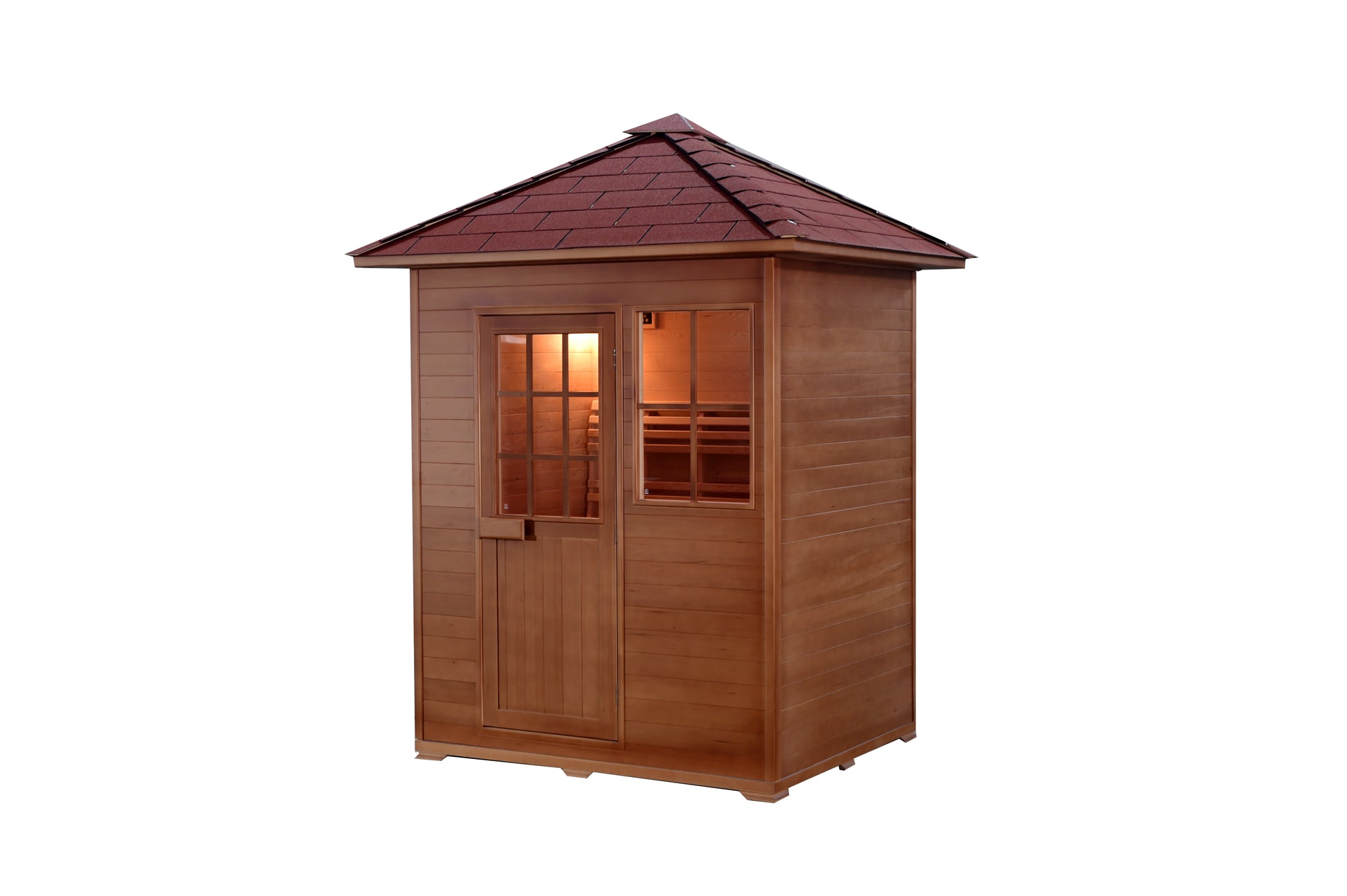 The Freeport is a premium outdoor Traditional Sauna designed for luxury backyard recovery. It is constructed from aged Canadian Hemlock wood. This unit is built to withstand the elements.