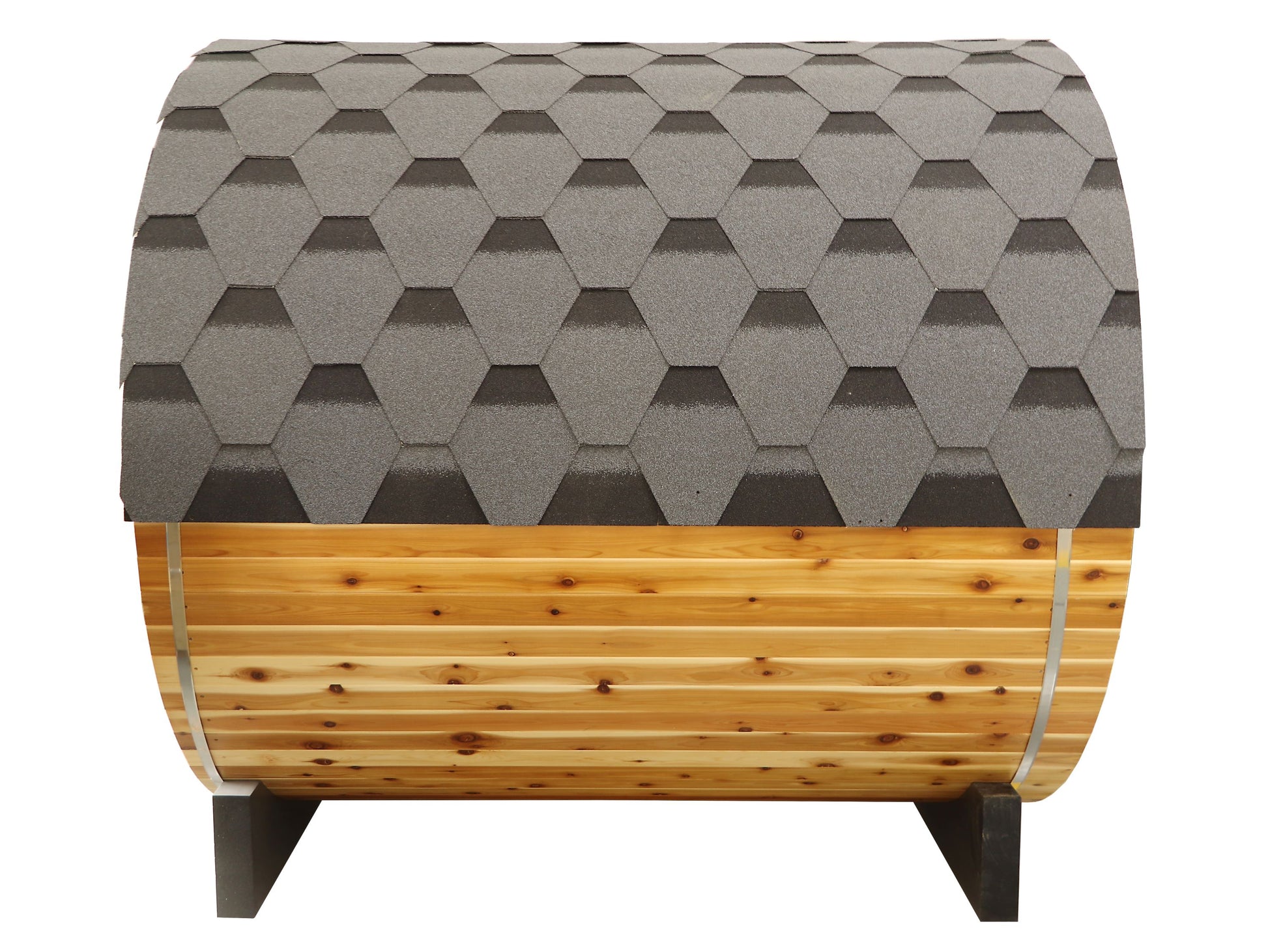 Every detail of the Galley is engineered for durability and ease of use. It includes a sturdy shingled roof kit, providing an extra layer of protection for the cedar and ensuring the interior stays dry during rain or snow. This Barrel Sauna also features a built-in floor kit for stability and dial controls for simple temperature management. The included accessory kit—featuring a wooden cask, ladle, thermo-hygrometer, and sand timer—ensures you have everything needed for a professional session from day one. The interior dome lighting creates a soft, warm ambiance, perfect for late-night sessions under the stars.